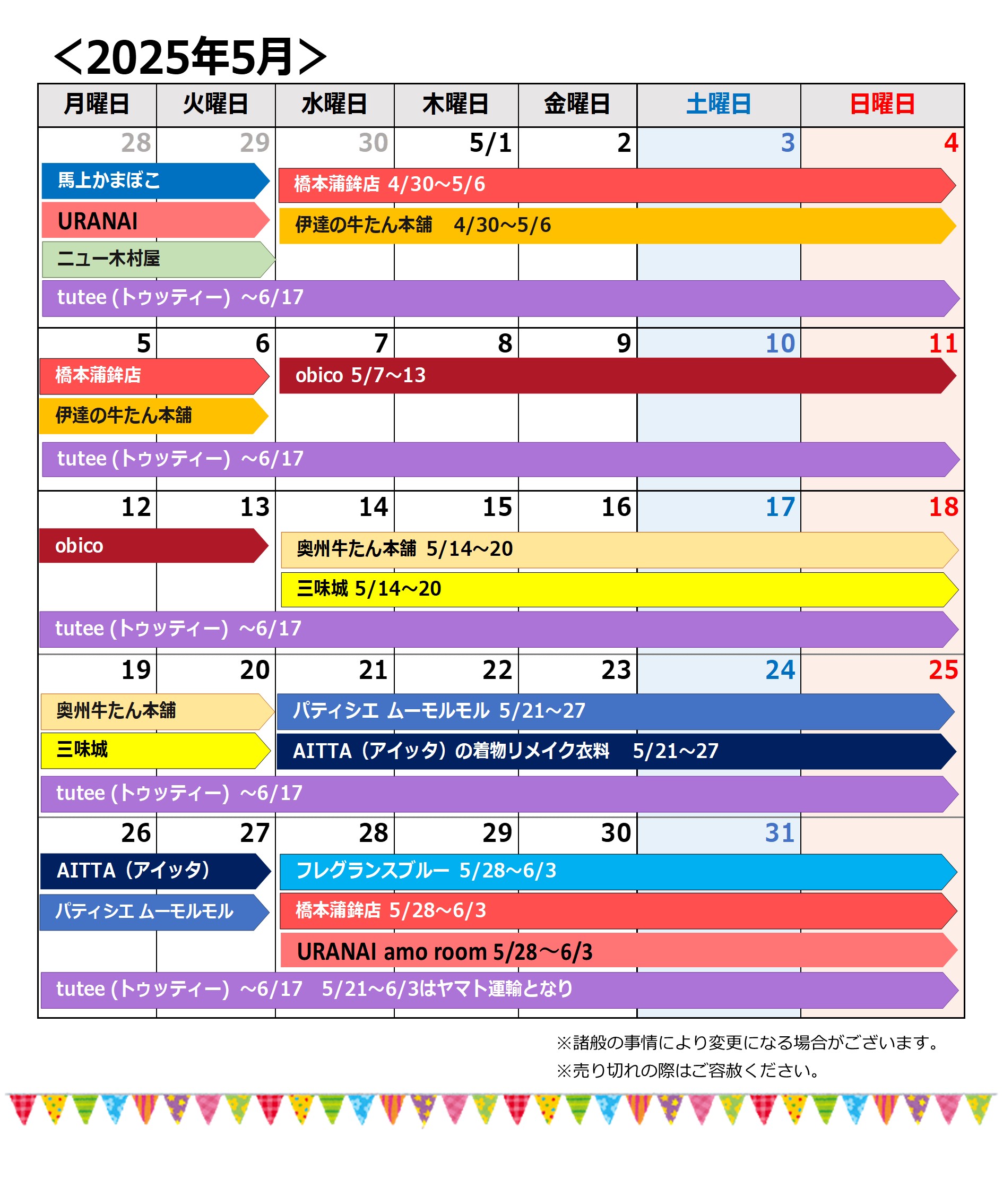 仙台空港2階催事エリアでは 日替わり・週替わりの催事を行っております。仙台空港をご利用の際やお近くにお住まいの方はぜひお立ち寄りください。