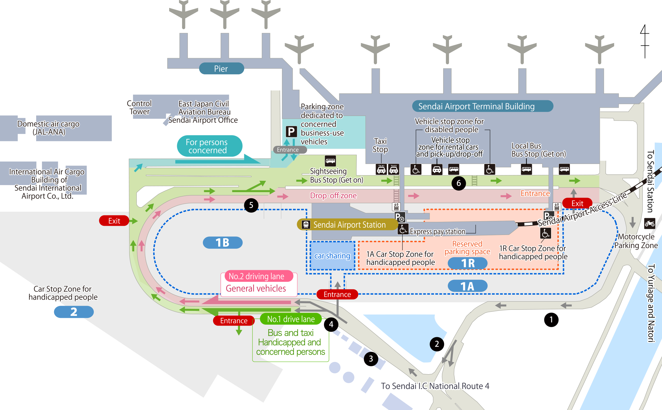 We have a designated drop-off lane in front of the passenger terminal building (Figure ⑥).