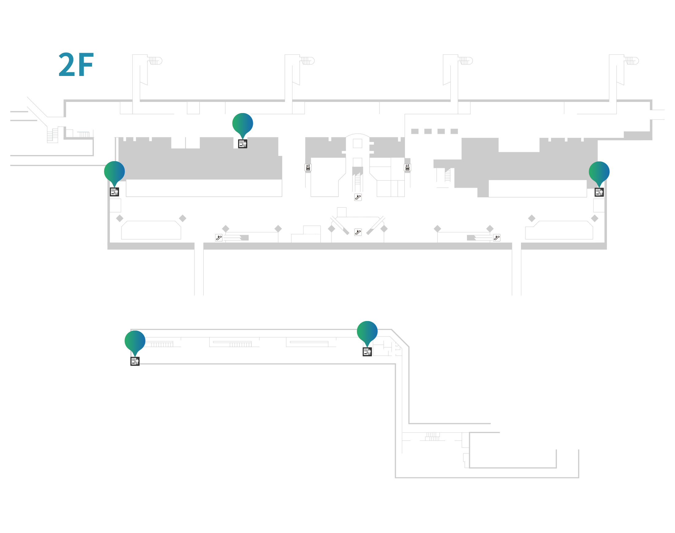 自動販売機 車椅子をご利用のお客様にも、使いやすい自動販売機を設置しています。 1F: 国内線到着口付近国際線到着口付近 MAP 2F: 国内線チェックインカウンター脇国内線搭乗待合室内 ゲート5付近国内線搭乗待合室内 ゲート8脇国内線搭乗待合室内 ゲート10脇 MAP 3F: 有料待合室前 MAP